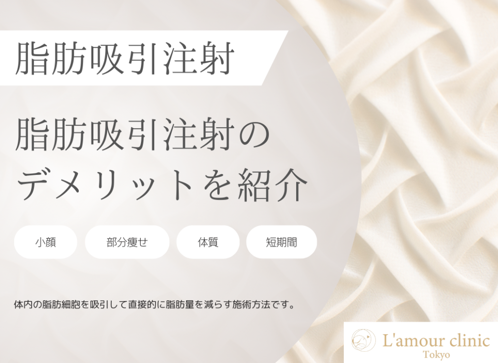 施術部位の皮下脂肪を直接取り除くことから、短期間での部分痩せ効果を期待できる「脂肪吸引注射」。 しかし、脂肪吸引注射を希望する方の中には、「脂肪吸引注射って、... -