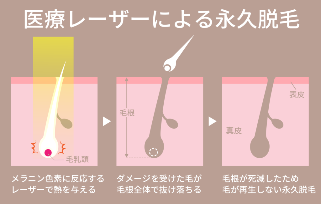 医療レーザー脱毛には、黒い色素(メラニン)に反応する波長のレーザーが用いられます。